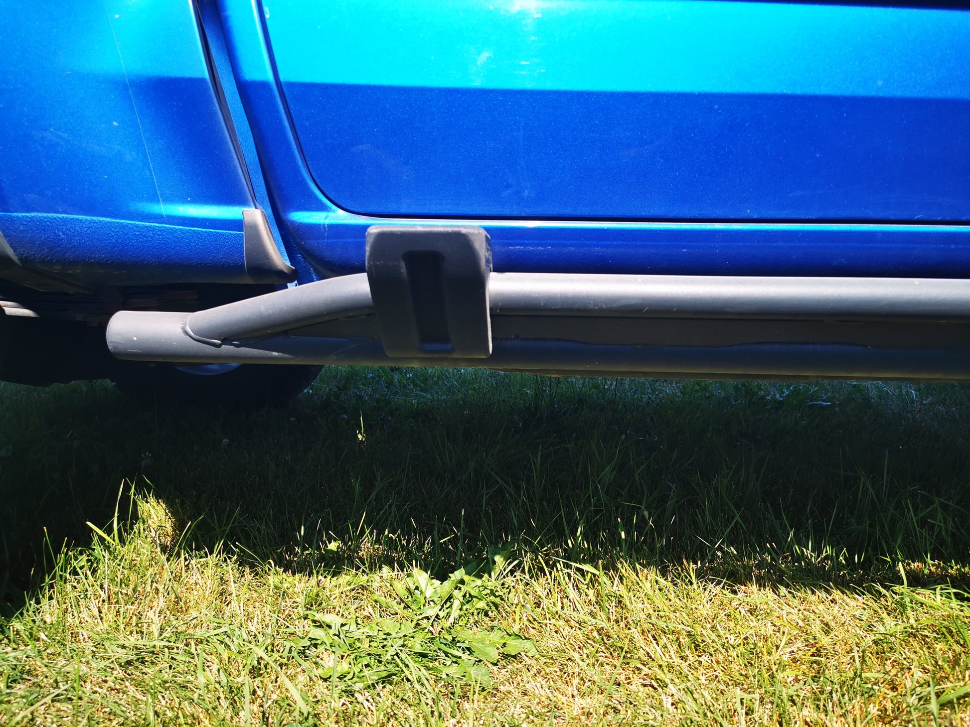 Made of composite thermoplastic and infused with carbon fibers for an ideal profile of toughness, these steps simply snap on your rocker guards or sliders without any tools or hardware, and adjust position to user preference, giving you the maximum height and position advantage while reaching your roof rack.