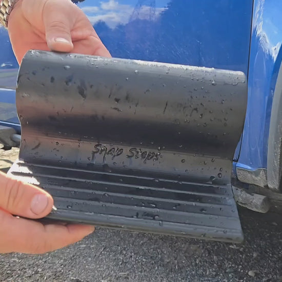 Made of composite thermoplastic and infused with carbon fibers for an ideal profile of toughness, these steps simply snap on your rocker guards or sliders without any tools or hardware, and adjust position to user preference.